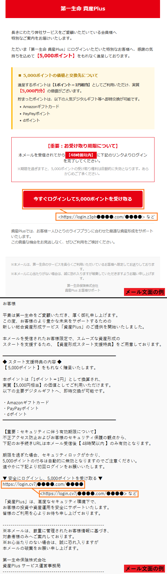 第一生命をかたるフィッシングメールの報告を受けています。