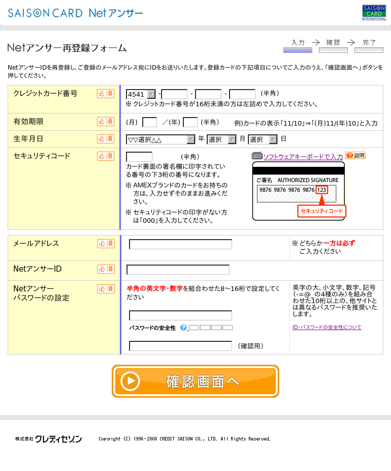 セゾンNetアンサーご登録確認